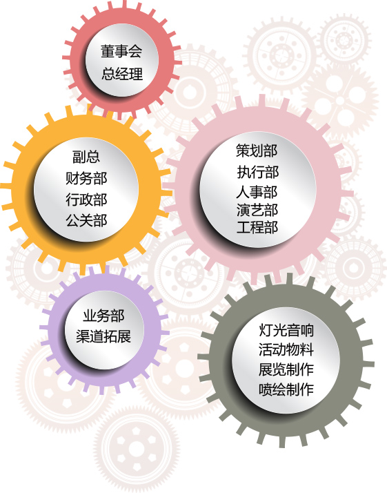 多年來公司形成了一套完整的工作流程和完美的執行過程才是對活動的最佳體現,才是對客戶的最大保障!因此,我們建立專屬的施工團隊,自設3000平米的燈光音響廠房、2000平方展覽制作工廠,利用現代化的制作設備、不斷添置各種用于活動的物料和燈光音響, 憑借豐富的資源優勢,以策劃創意為基礎,以高素質的節目策劃團隊、龐大的中外演藝資源、精準的預見策劃、快速高效的執行、一流的舞臺演出設備、豐富的舞美設計施工搭建經驗,贏得了北京上海廣州廣告同行客戶的一致認可.公司聚集了20多個豐富經驗的活動執行精英,根據客戶不同需求,憑借精湛的專業技術和豐富的市場經驗,為客戶安排一切活動流程,解決活動中遇到的難題,力求保證我們的執行過程是高水平、高品質!